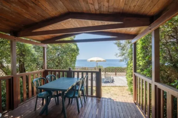 - Environnement naturel préservé, au cœur d’une pinède méditerranéenne, avec accès direct à une plage protégée et à une petite crique peu profonde, idéale pour les jeunes enfants.